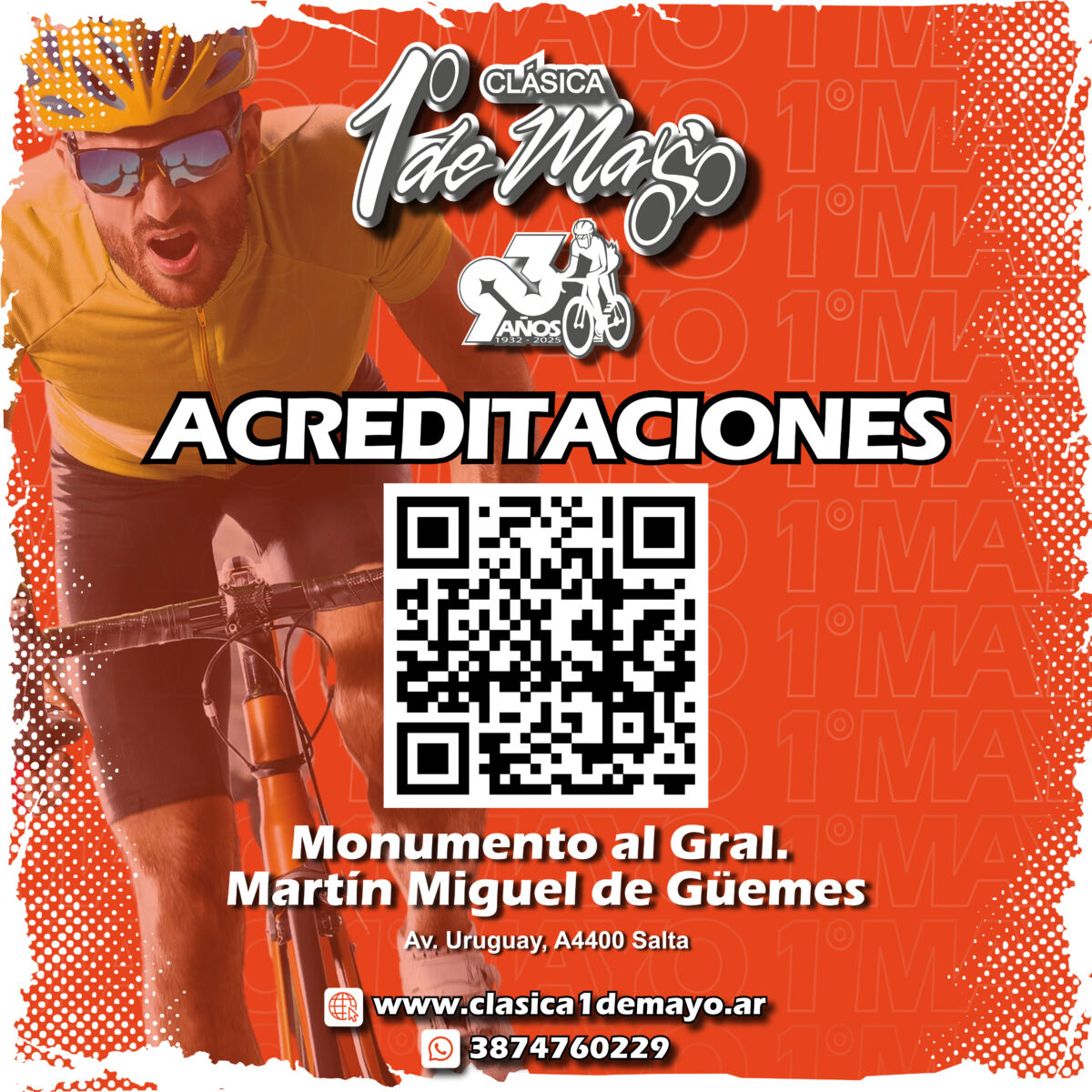 Las Acreditaciones a nuestros Ciclistas se harán el dia 30/04 en el Monumento Al G. Martín Miguel de Guemes, desde las 17 a 20:30 Hs. En nuestro flyer aparece el Código QR de la ubicación en Google Maps, para que sea más rápido el acceso.