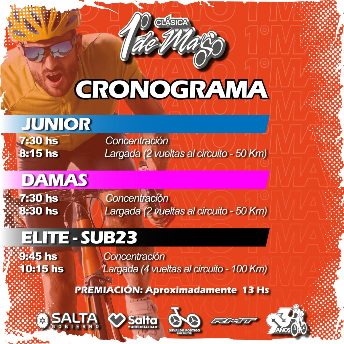 Te presentamos el Cronograma para la carrera, el dia jueves 1 de mayo.